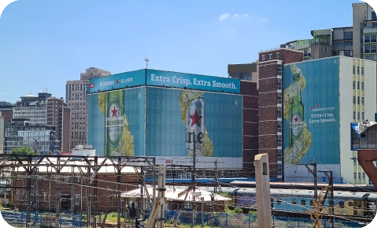 We offer a full range of OOH solutions including billboards, large-format media, building wraps, wallscapes, hoardings, and commuter-hub advertising.